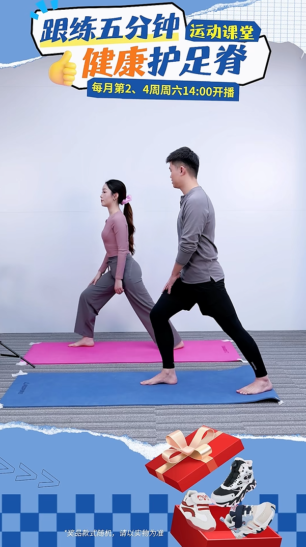 为积极响应“健康中国”战略,助力提升大众足脊健康意识,12月,专注于足脊健康领域的全国唯一家庭健康鞋品牌,江博士健康鞋打造了全新固定直播栏目 ——“跟练 5 分钟 健康护足脊”。该栏目定于每月第 2 周和第 4 周的周六下午14:00于全平台同步直播,由专业运动指导员线上带领观众实践跟练,致力于助力更多家庭掌握科学护足护脊方法,有力地推动足脊健康科普工作常态化、长效化发展。