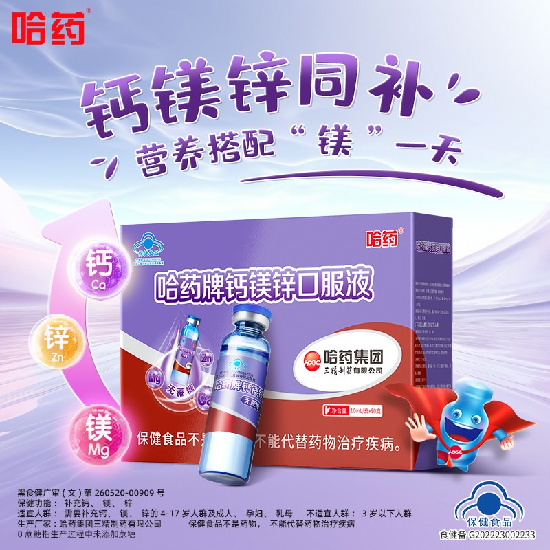 随着“三九四九冰上走”的寒冷深入,儿童因缺乏阳光照射导致维生素D合成不足,钙吸收效率下降的问题愈发突出。哈药牌钙镁锌口服液精准把握这一需求,每支10ml含钙100mg、镁50mg、锌1.33mg,特别设计了钙镁2:1的科学配比。这一比例并非随意设定,而是基于人体生理代谢规律:镁是能量代谢和骨骼形成的重要辅因子,能协同钙共同作用于骨基质的矿化过程,提升钙的利用率,使补钙效果更高效、更温和。