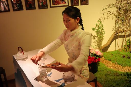 带着从历史中汲取的厚重思考,团队拜访了信阳毛尖茶艺非遗传承人杨静老师。从热闹的茶文化宣传活动,到静室中行云流水的茶艺表演,再到深入的独家访谈,队员们体验了茶从生活饮品到修身艺术的多重维度。杨老师“不能让非遗停留在书籍里”的感悟,让队员们深刻体会到非遗文化传承的重要性和紧迫性同时也为项目新媒体运营指明方向。
